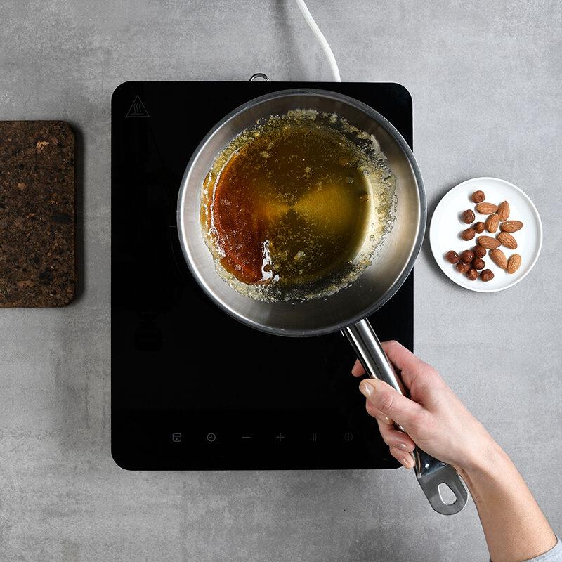 Dissoudre et faire caraméliser du sucre est une question de doigté et de patience. Il est important de ne pas faire brûler le sucre, sinon le caramel aura un goût amer et ne pourra pas être utilisé.