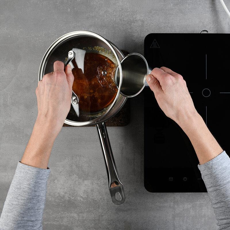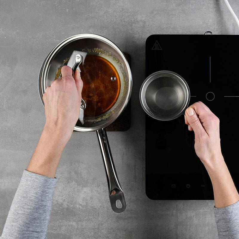 Pour la plupart des recettes, le sucre est déglacé après avoir été dissous dans un peu d’eau, puis réduit en caramel.