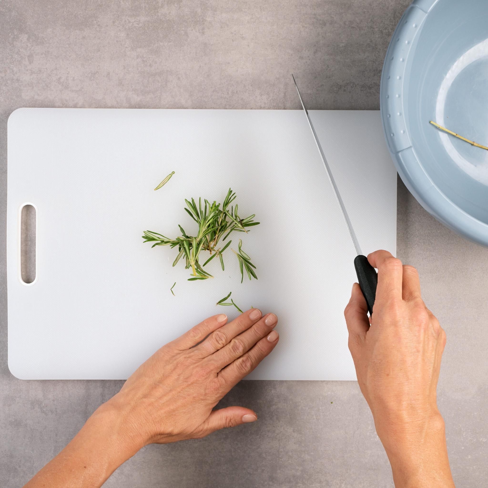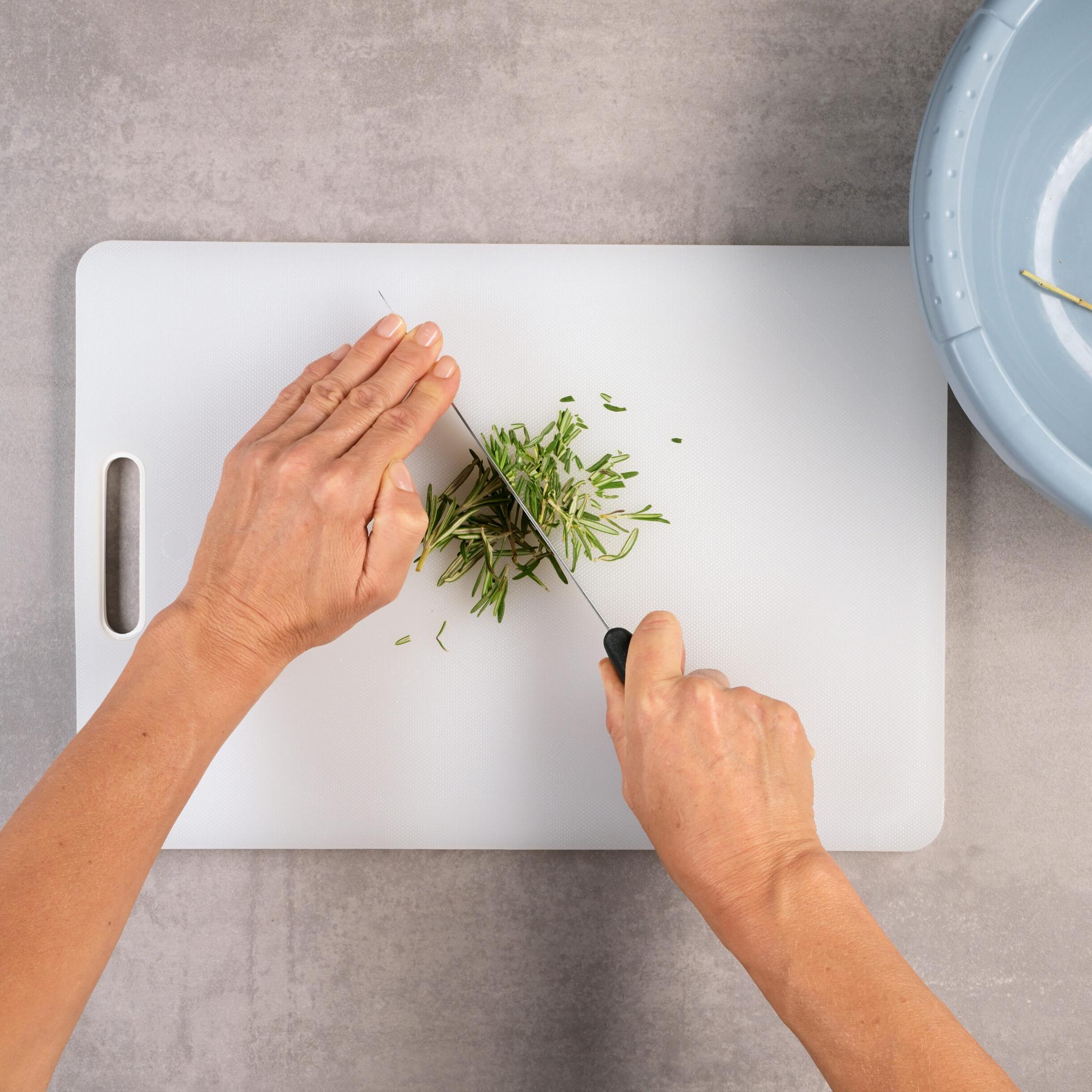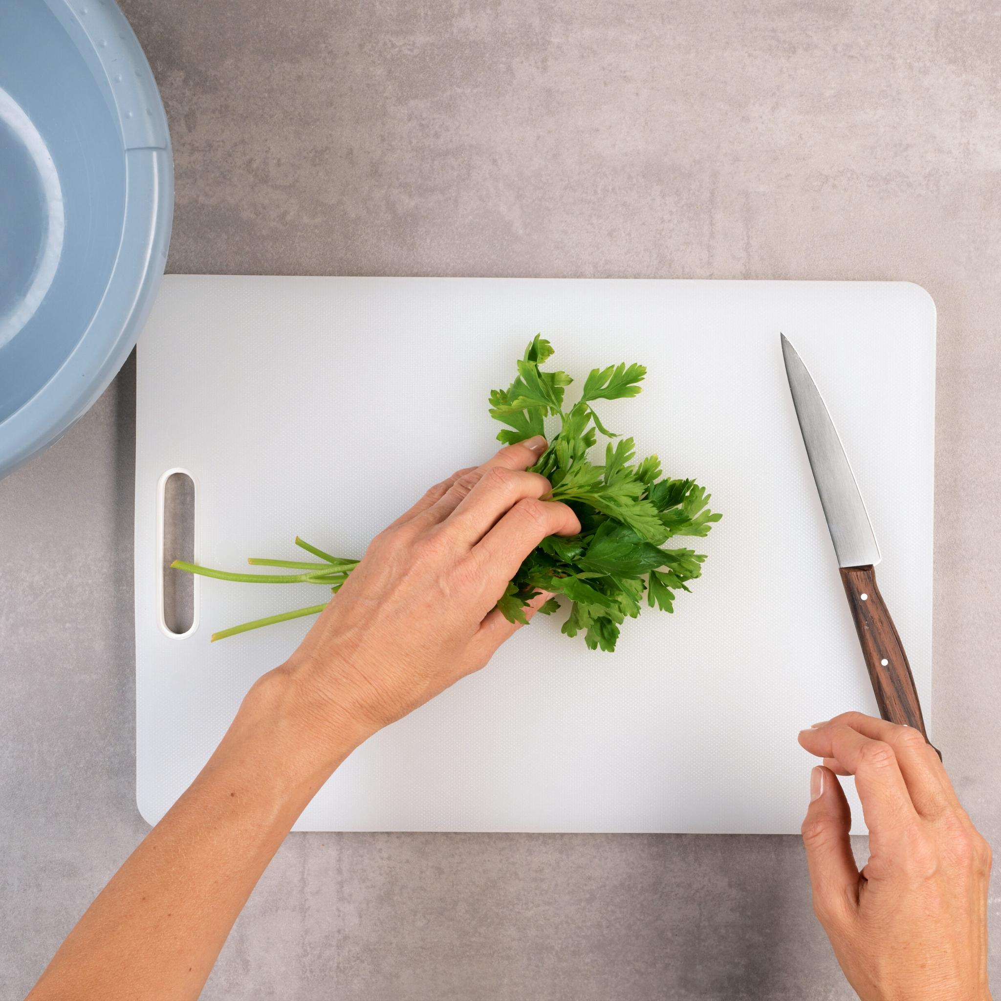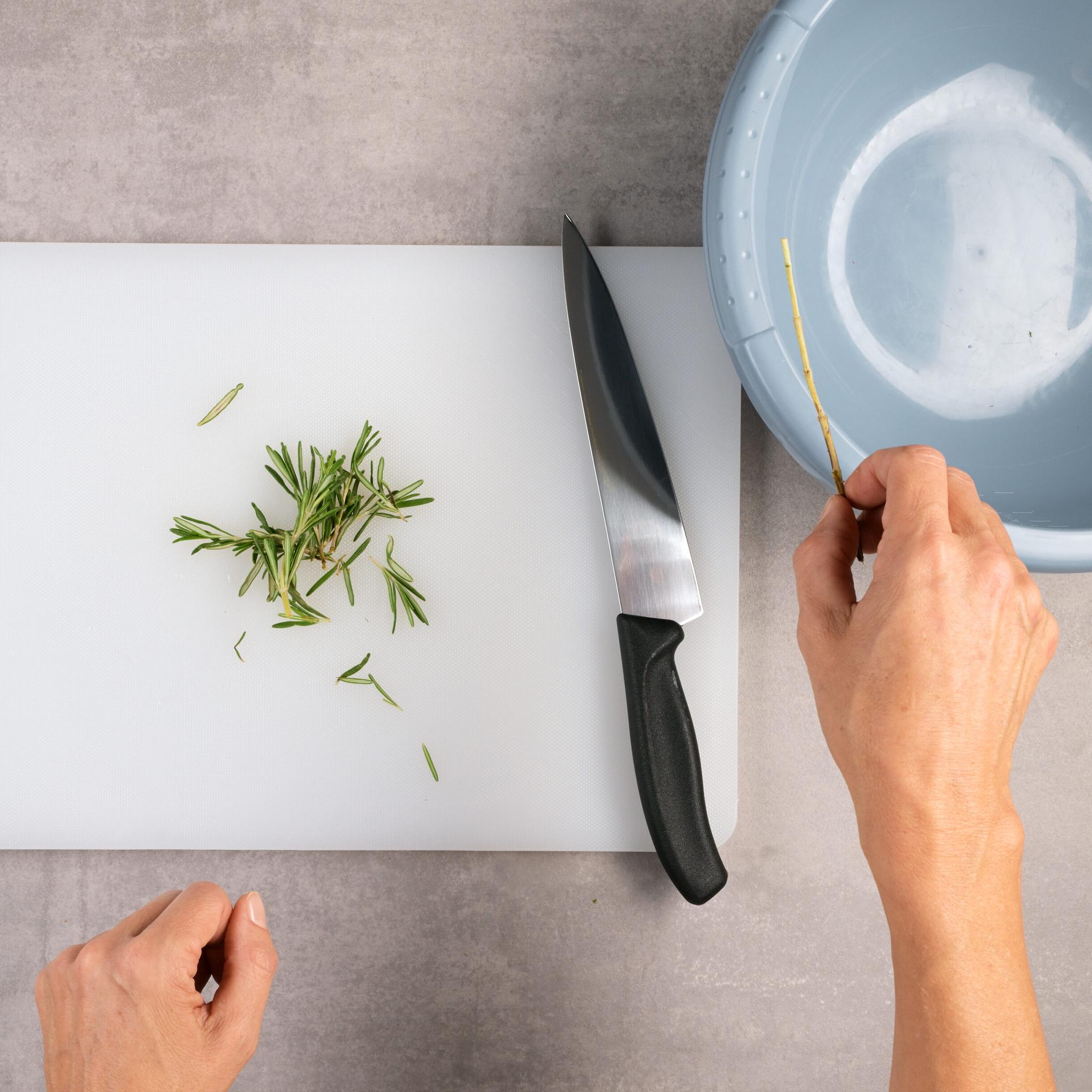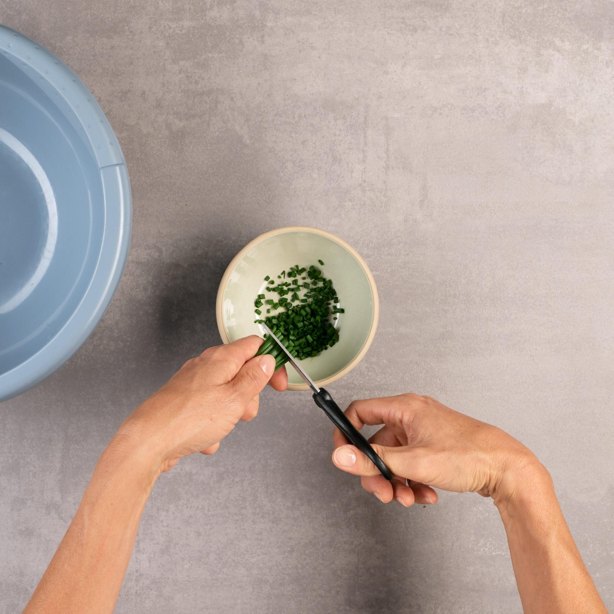 Tu peux récolter des herbes fraîches soit dans le pot sur le rebord de la fenêtre, soit en acheter en bouquet au magasin. Plus les herbes sont fraîches, mieux c’est. Si tu dois tout de même les garder, place le bouquet dans un verre d’eau comme des fleurs coupées. Tu peux également couper les herbes fraîches, les congeler dans un bac à glaçons et les conserver ainsi.