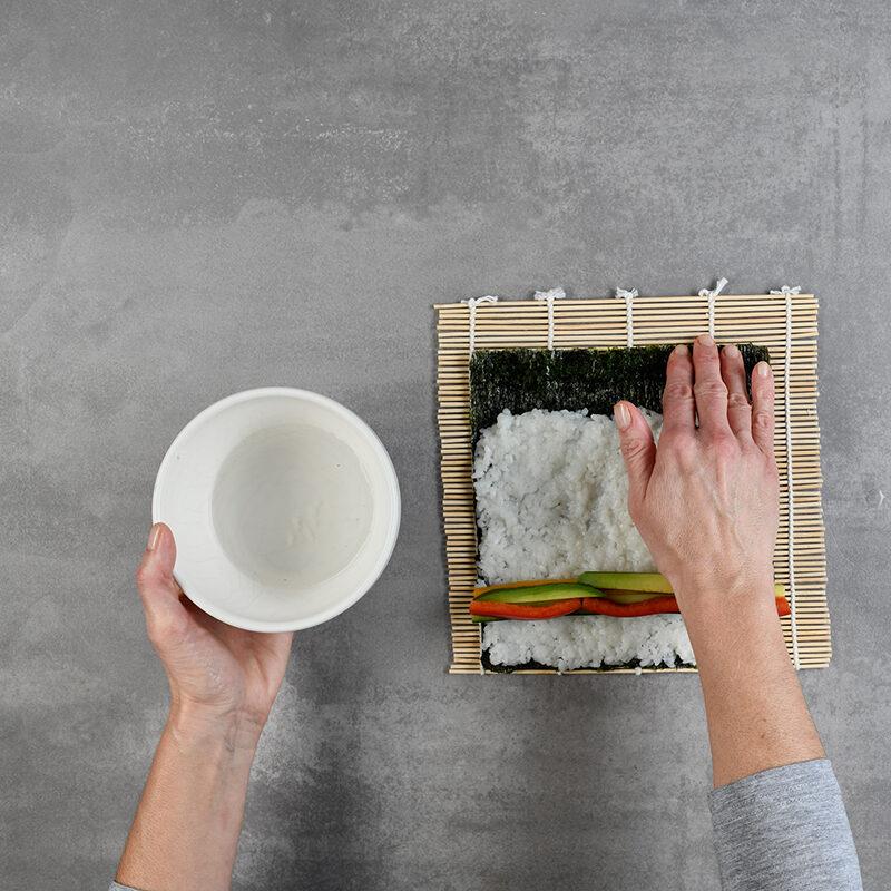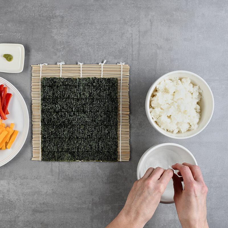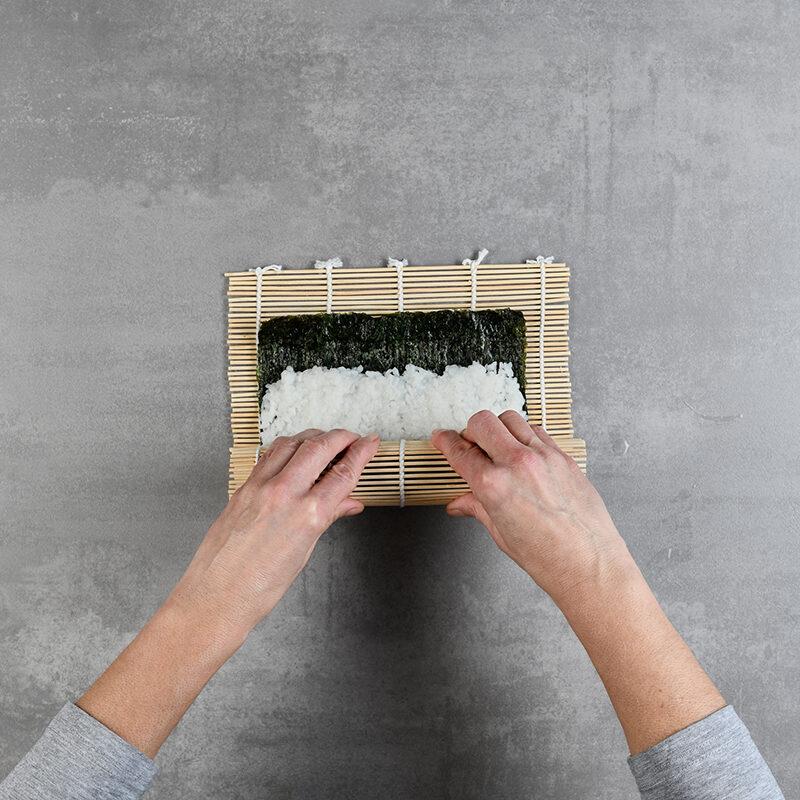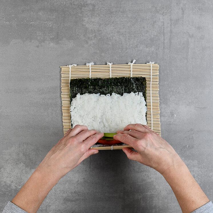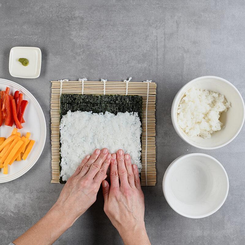 Il existe différentes variantes de sushis: la couche de riz peut être soit à l’extérieur, soit à l’intérieur de la feuille d’algue nori. Les rouleaux dont la feuille d’algue nori est à l’extérieur sont un peu plus simples à façonner.