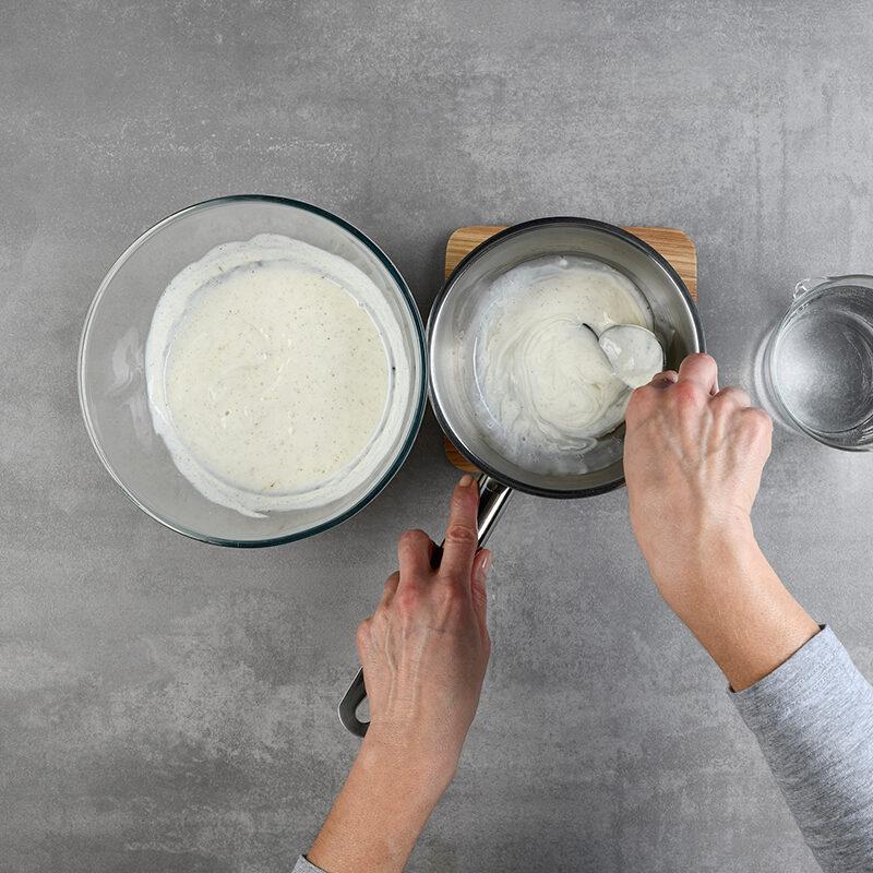 La gélatine est un produit d’origine animale. Il existe également des alternatives végétales, comme l’agar-agar. Ce dernier ne se travaille pas de la même façon que la gélatine. Voici une recette avec les deux variantes que tu peux comparer: