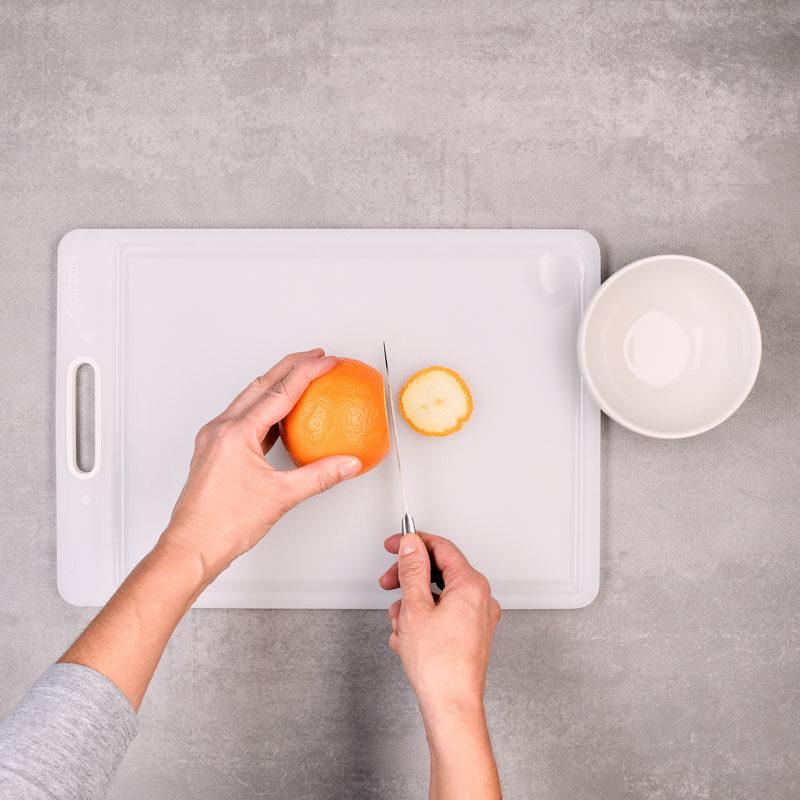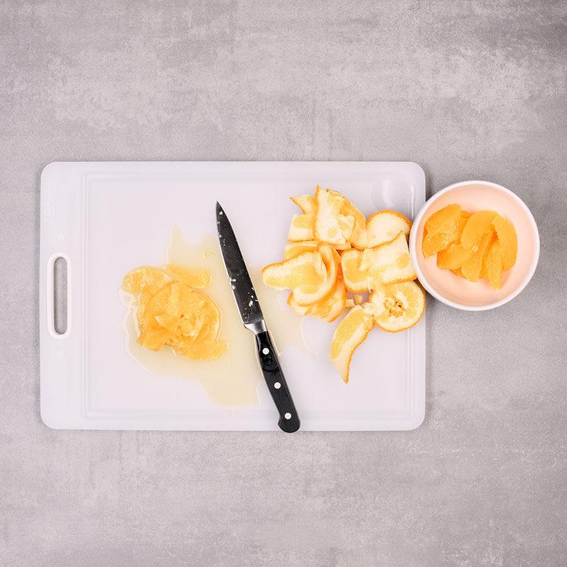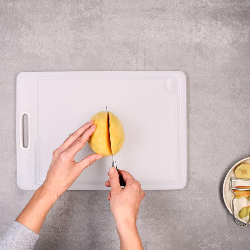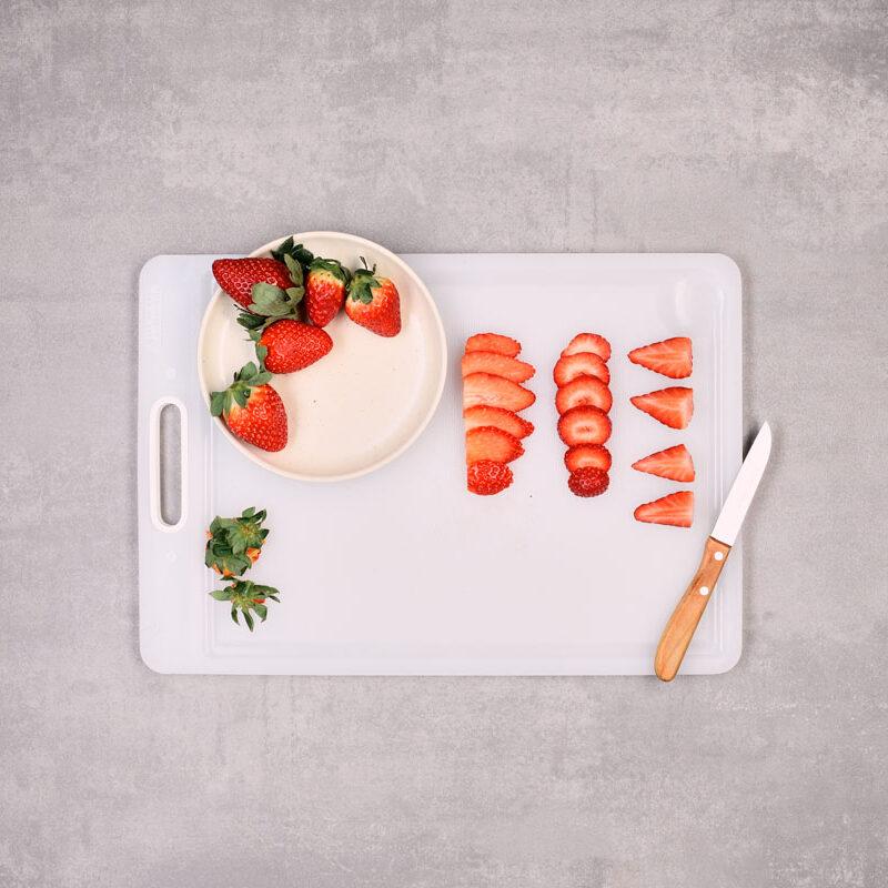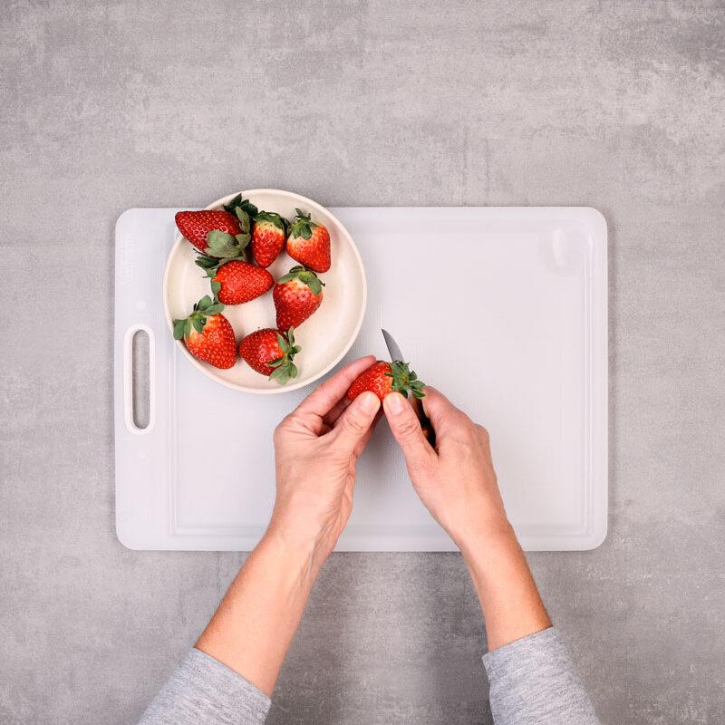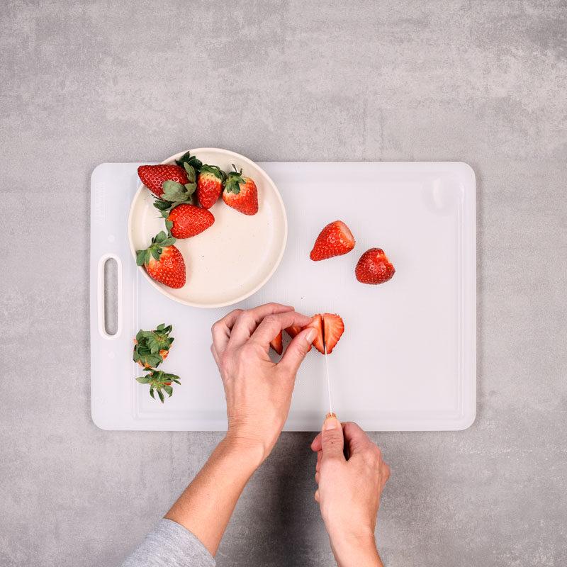 Pour travailler les fruits, utilise des planches à découper que tu n’utilises que pour les fruits. Si tu utilises une planche sur laquelle tu as déjà coupé des oignons, tes fruits prendront ce goût.
