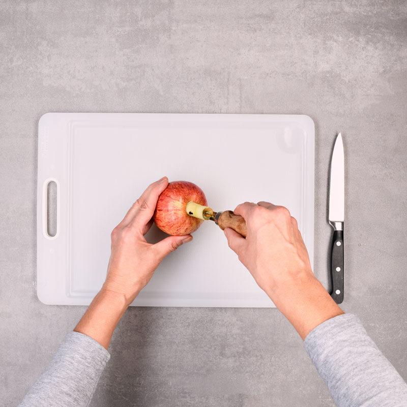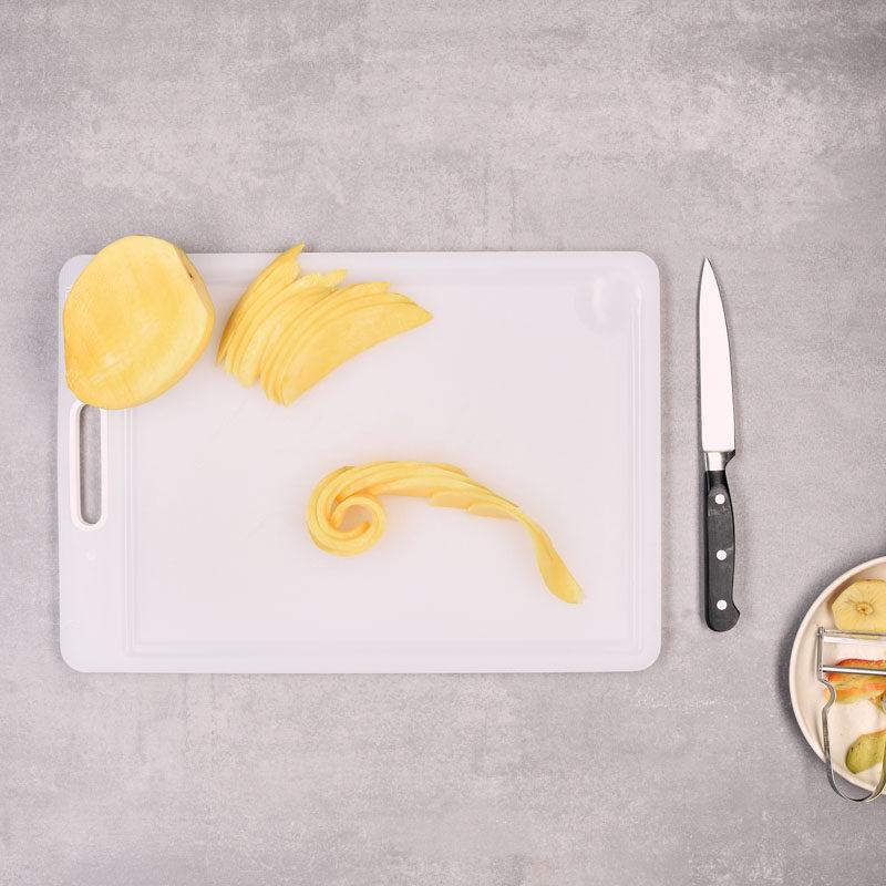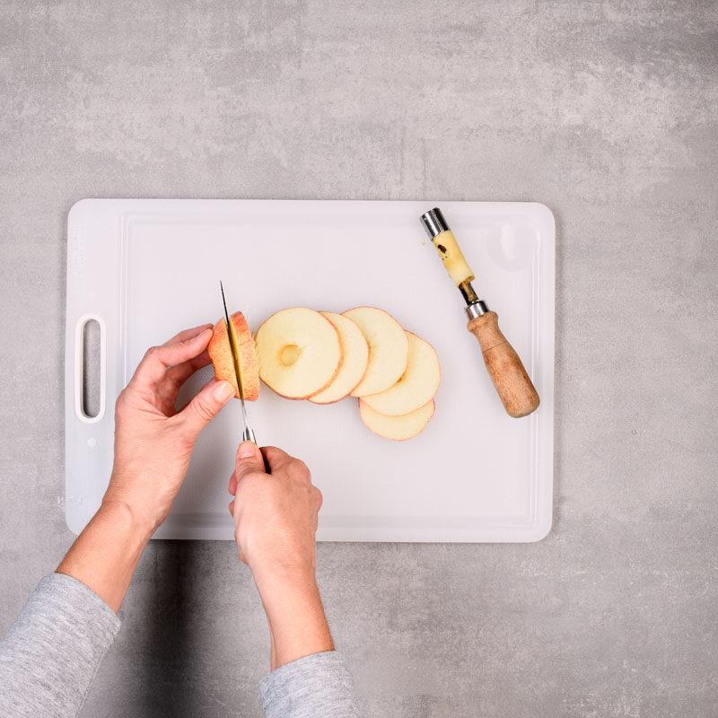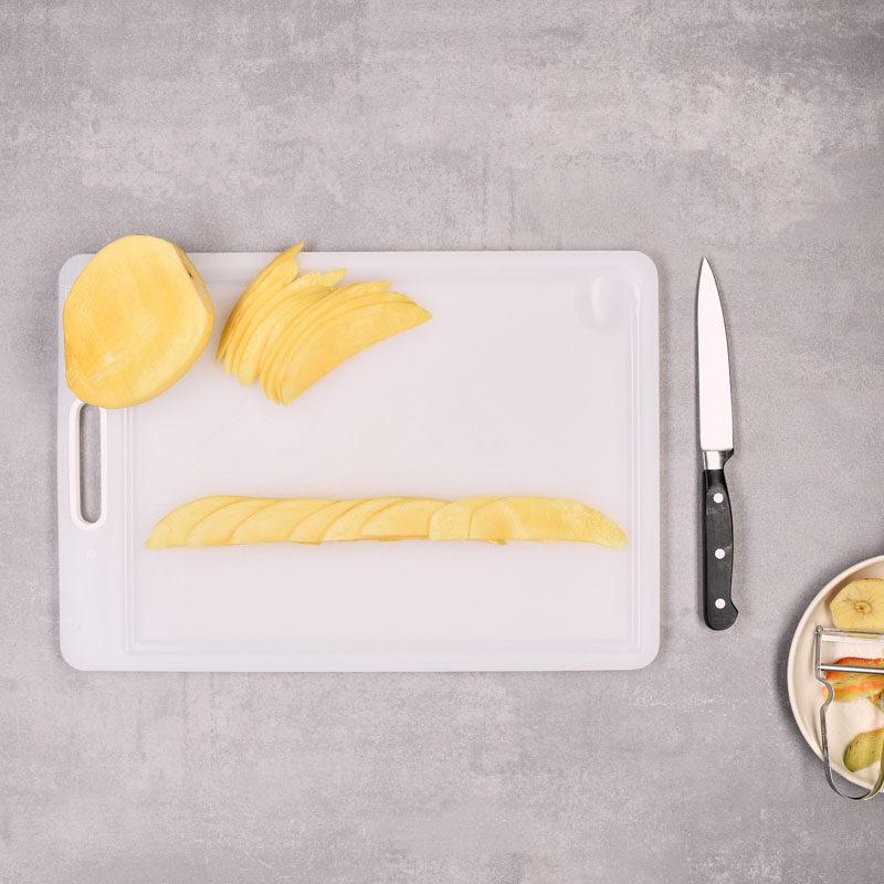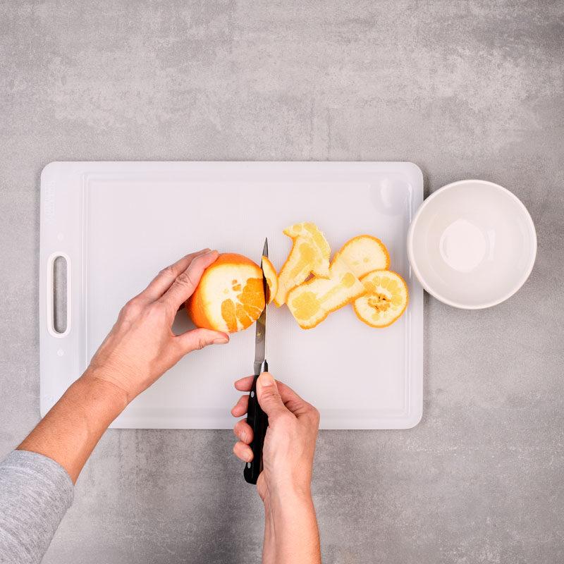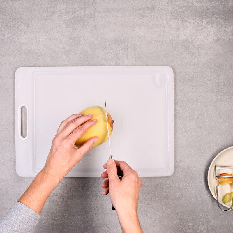 Pour travailler les fruits, utilise des planches à découper que tu n’utilises que pour les fruits. Si tu utilises une planche sur laquelle tu as déjà coupé des oignons, tes fruits prendront ce goût.