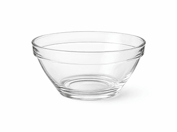 Récipient rond en acier chromé, en verre, en plastique ou en porcelaine.